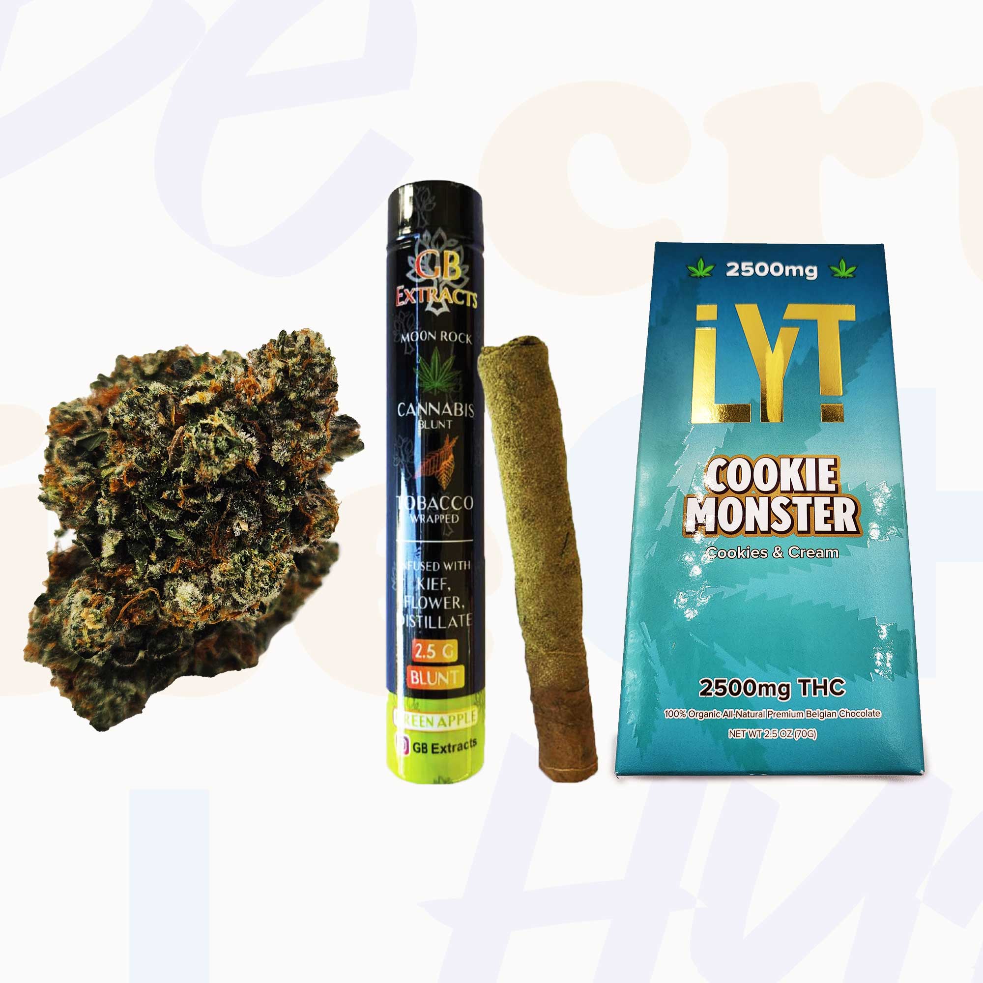 8th LA Confidential, GB 2.5g Moon Rock Blunt, LYT 2500mg Chocolate